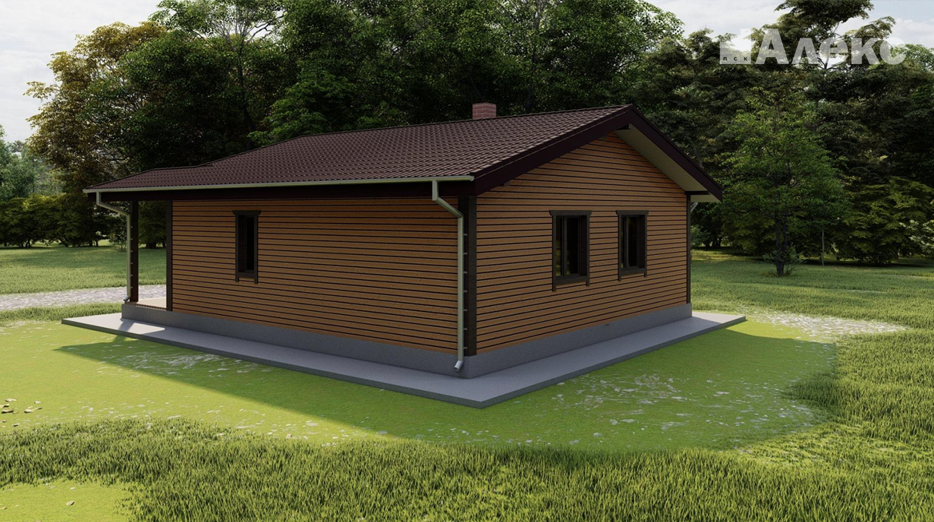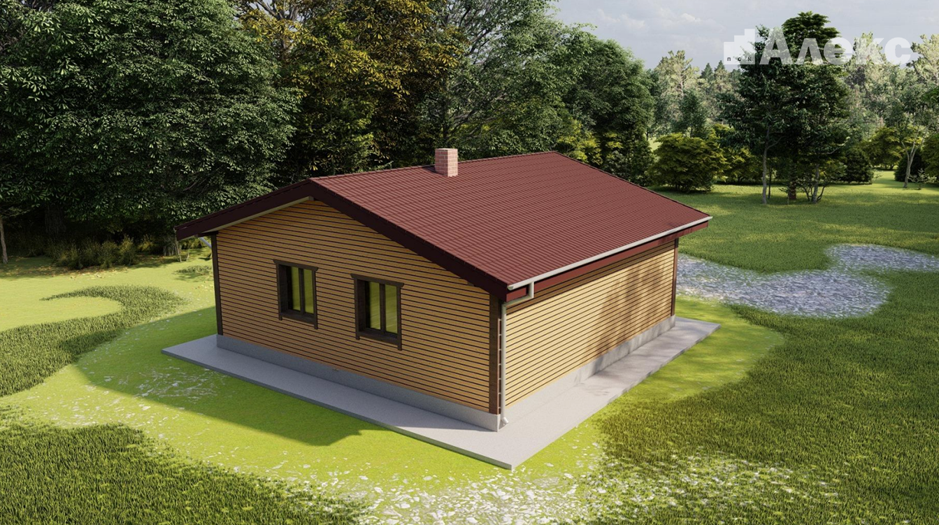 Компактный каменный дом 9х9 м включает в себя кухню, совмещенную с гостиной площадью 19,75 кв.м., 2 спальни по 11,85 кв.м. каждая, а также кладовая 3,75 кв.м. и один общий санузел.