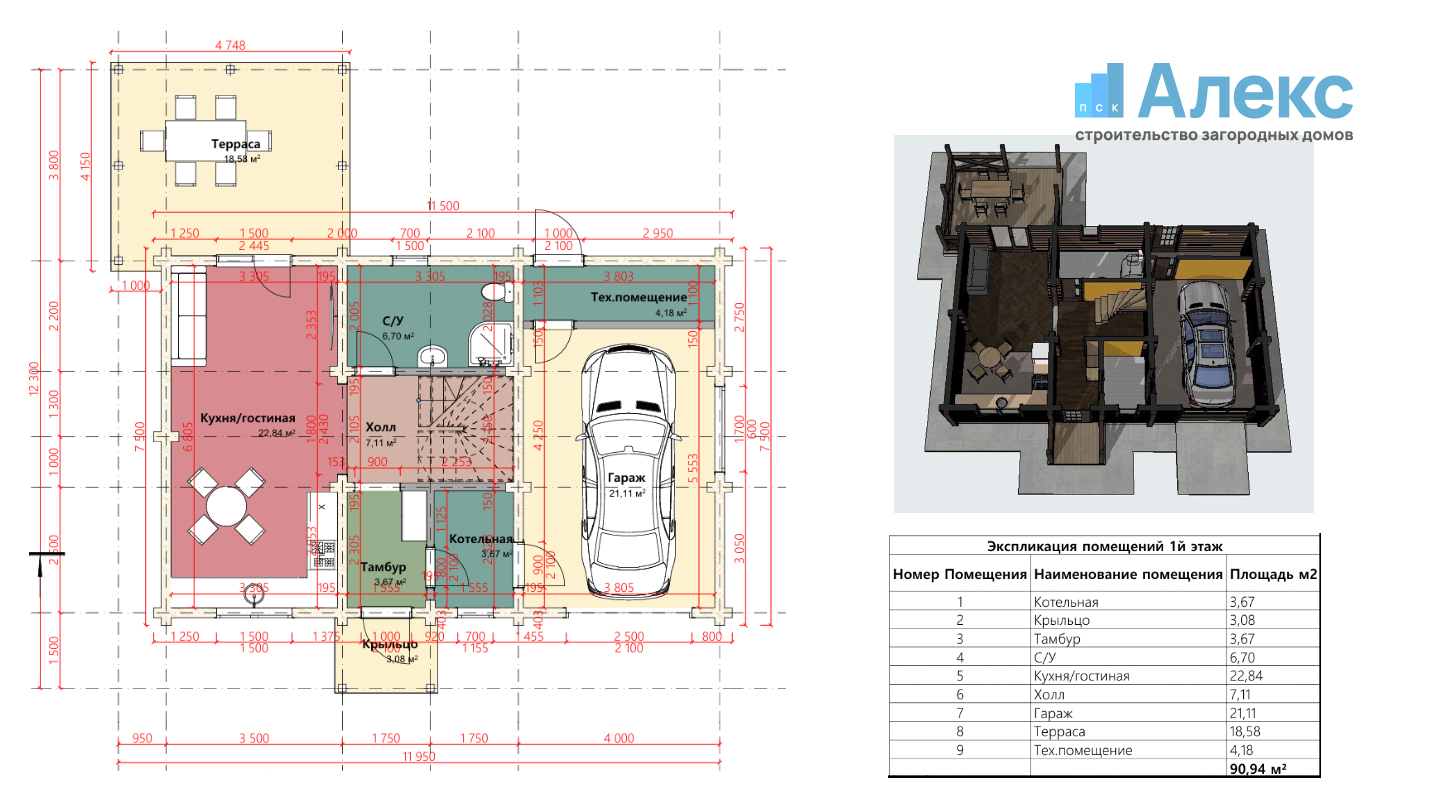 • Котельная (3,67 м²): Отдельное помещение для установки системы отопления и технического оборудования.