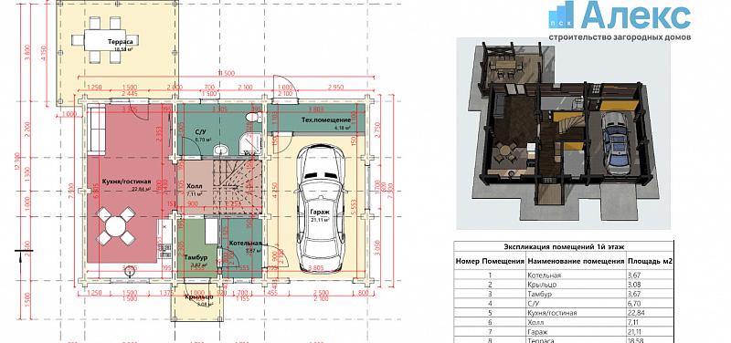 • Гараж (21,11 м²): Просторное помещение для парковки автомобиля.