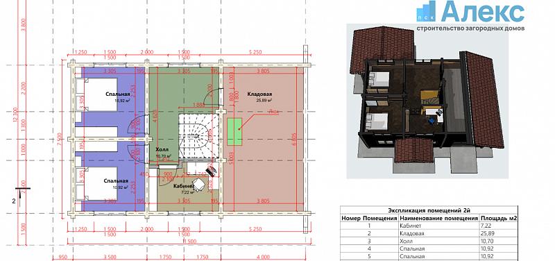 • Холл (10,70 м²): Просторный коридор, соединяющий все комнаты второго этажа.