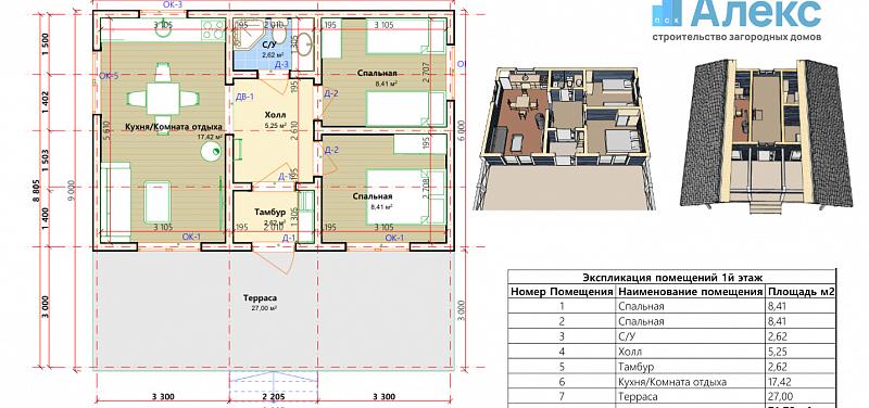 Компактный и уютный одноэтажный дом 9×9 метров