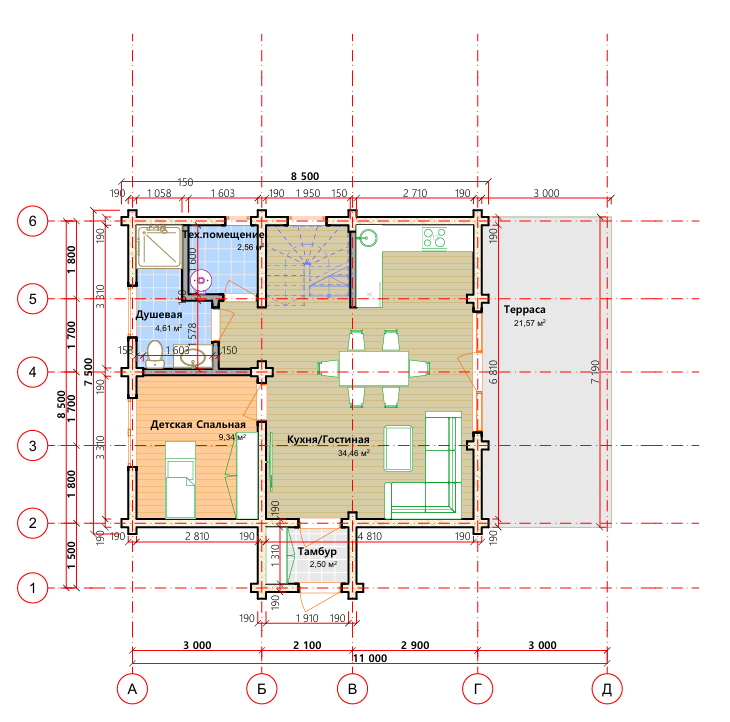 • Площаль кухни 34,46 м2